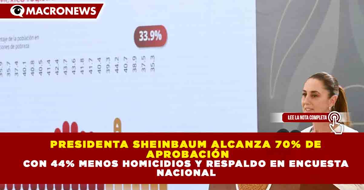 Redacción Macronews.- La presidenta de México, Claudia Sheinbaum, registra un nivel de aprobación del 70% entre la ciudadanía, de acuerdo con una encuesta nacional de la QM Estudios de Opinión, en un contexto marcado por avances en seguridad y presencia internacional.