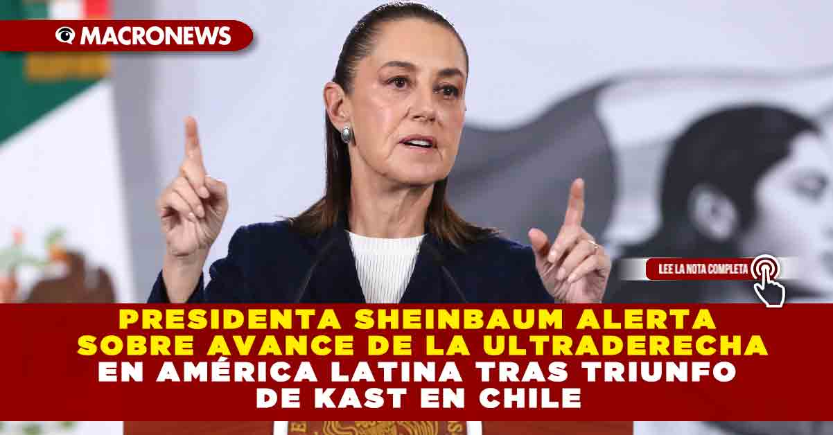 Redacción Macronews.- La presidenta Claudia Sheinbaum señaló que el triunfo de José Antonio Kast en las elecciones presidenciales de Chile representa un momento de reflexión para los movimientos progresistas en América Latina. Durante su conferencia matutina, la mandataria mexicana destacó la necesidad de analizar las circunstancias que llevaron al avance de la ultraderecha y la importancia de fortalecer gobiernos cercanos al pueblo.
