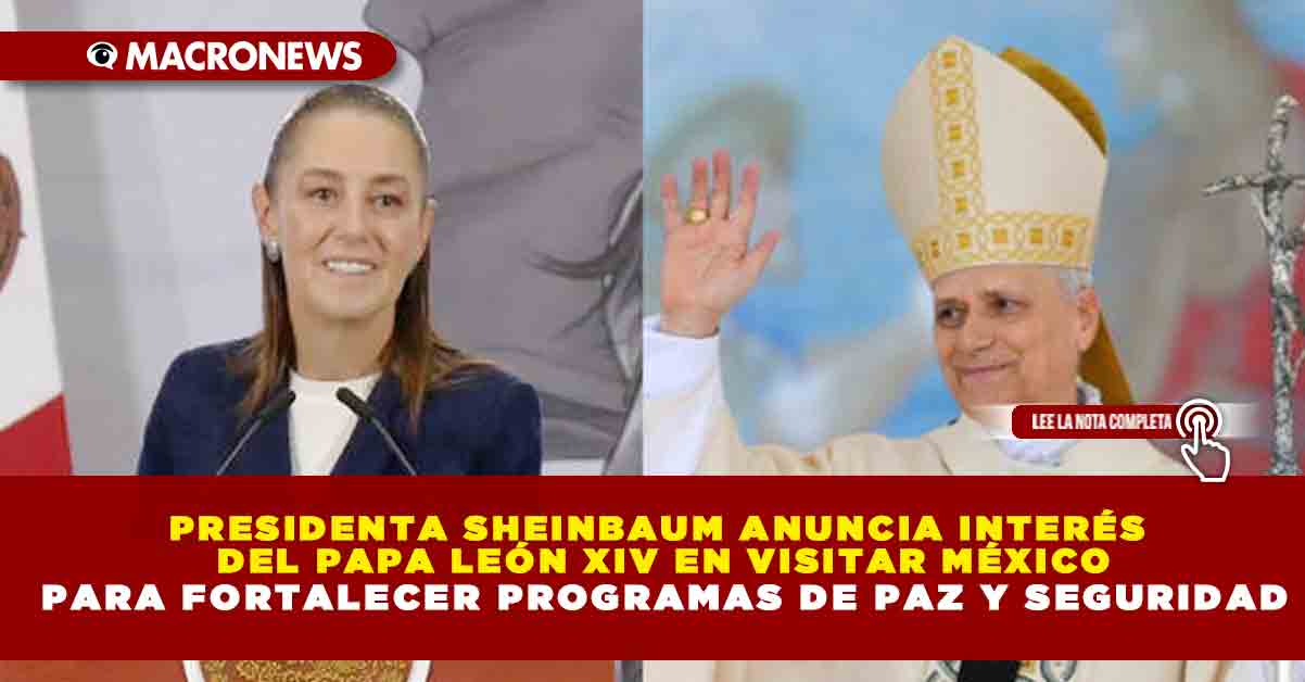 Redacción Macronews.- La presidenta Claudia Sheinbaum Pardo informó que el Papa León XIV reconoció el papel de la Iglesia en México para apoyar la estrategia nacional de pacificación y manifestó su disposición para fortalecer la colaboración institucional. Durante la conversación telefónica del pasado 12 de diciembre, el pontífice expresó su interés en recorrer el país y reforzar iniciativas como el programa “Sí al desarme, sí a la paz”, aunque aún no se ha definido una fecha para su visita.