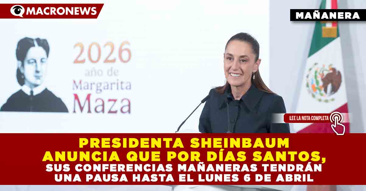 Redacción Macronews.- La presidenta de México, Claudia Sheinbaum Pardo, anunció la suspensión temporal de sus conferencias matutinas con motivo de la Semana Santa 2026. Durante su última intervención de la semana en el Salón de la Tesorería, la mandataria informó que los días jueves 2 y viernes 3 de abril no se llevará a cabo el habitual encuentro con los medios, retomando la actividad oficial y el diálogo con la prensa hasta el próximo lunes.