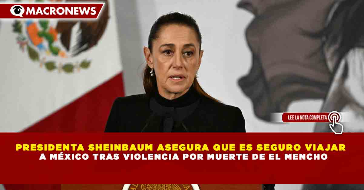 Redacción Macronews.- La presidenta Claudia Sheinbaum afirmó este jueves que viajar a México es seguro, pese a la reciente ola de violencia registrada tras el abatimiento de Nemesio Oseguera Cervantes, alias “El Mencho”, y destacó que lo importante es cómo se difunden los hechos para no generar alarma innecesaria.