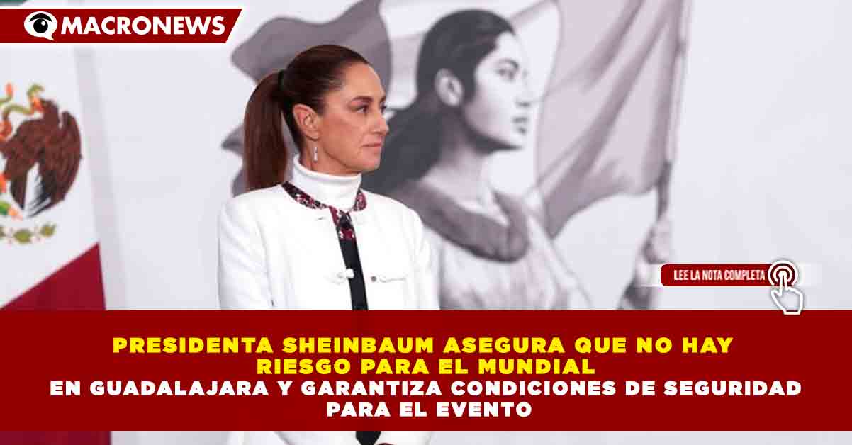 Redacción Macronews.- La presidenta de México, Claudia Sheinbaum, aseguró que existen “todas las garantías” y “ningún riesgo” para que Guadalajara, Jalisco, sea sede de los partidos de la Copa Mundial de la FIFA 2026, pese a los recientes hechos de violencia registrados en la entidad.
