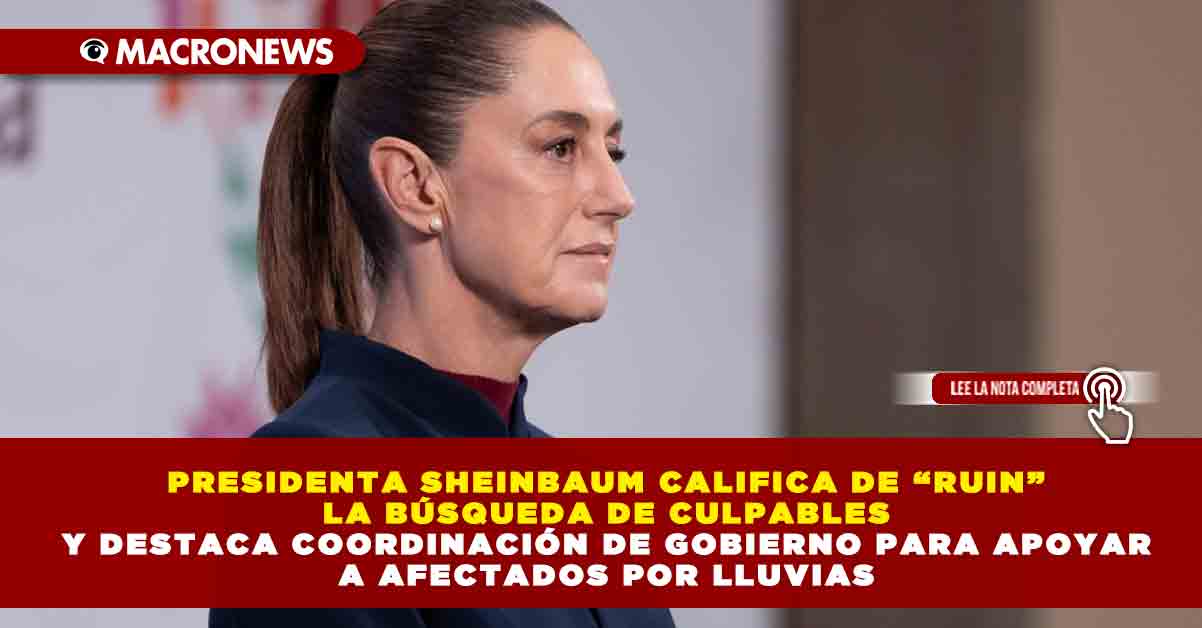 Ciudad de México, 14 de octubre (SinEmbargo).- La Presidenta Claudia Sheinbaum Pardo calificó como “ruin” la actitud de la oposición y de algunos medios de comunicación que, en medio de la emergencia por las intensas lluvias en el país, buscan culpables entre las autoridades estatales y municipales.