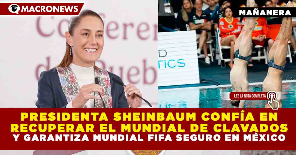 Redacción Macronews.- La presidenta de México, Claudia Sheinbaum Pardo, afirmó que su gobierno mantiene la esperanza de recuperar la Copa del Mundo de Clavados 2026, cancelada tras hechos de violencia en Jalisco, y aseguró que se reforzará la coordinación internacional para que el evento vuelva a realizarse en el país.