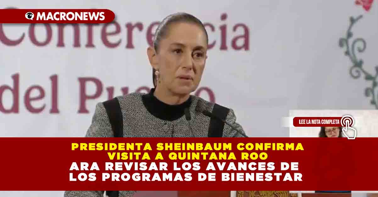 La presidenta de México, Claudia Sheinbaum, confirmó su visita a Quintana Roo este fin de semana, donde llevará a cabo una agenda de supervisión junto a la gobernadora Mara Lezama.
