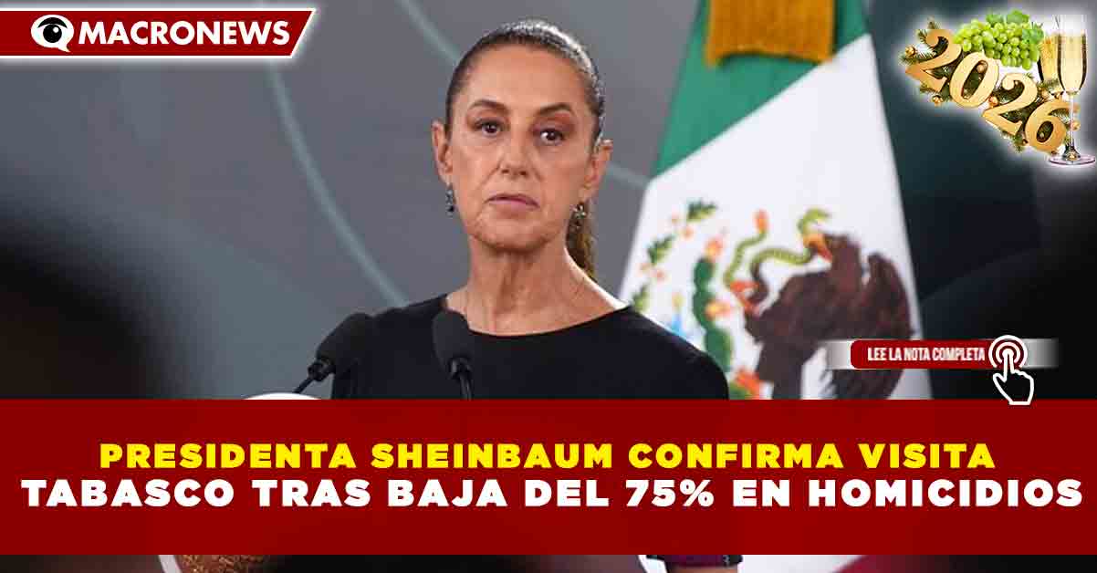Redacción Macronews.- La presidenta Claudia Sheinbaum Pardo confirmó que visitará Tabasco en próximas fechas para encabezar de manera directa el Gabinete de Seguridad, como parte de la estrategia nacional de evaluación que ya se aplica en otras entidades del país, en un contexto donde el estado reporta una reducción del 75% en homicidios respecto al año pasado.