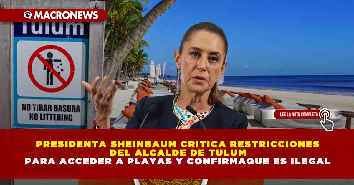El acceso a las playas no debe estar “limitado a quien tiene recursos económicos”, advirtió la presidenta Claudia Sheinbaum, luego de que el alcalde de Tulum, Diego Castañón, anunciara las ‘condiciones’ para que las personas pudieran disfrutar de esos espacios.