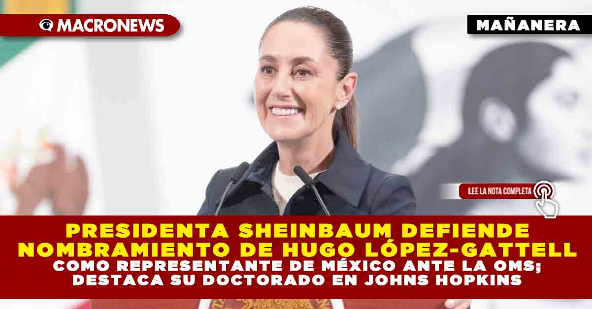 “Vean el escándalo que armaron con Hugo. De veras que es increíble. Tiene doctorado en Johns Hopkins en Salud Pública”, expresó Sheinbaum ante los medios, al tiempo que reiteró que ella misma propuso el nombramiento y que no se requiere ratificación del Senado para que López-Gatell asuma el cargo en la sede de la OMS en Ginebra, Suiza.