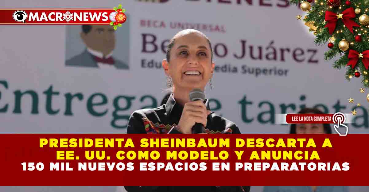 Redacción Macronews.- La presidenta de México, Claudia Sheinbaum, afirmó que Estados Unidos no debe ser considerado un modelo a seguir, al señalar que el país norteamericano enfrenta serios problemas de drogadicción y una crisis de valores que, aseguró, no se presentan en la sociedad mexicana, al tiempo que defendió su política educativa y anunció la creación de 150 mil nuevos espacios en el nivel medio superior.