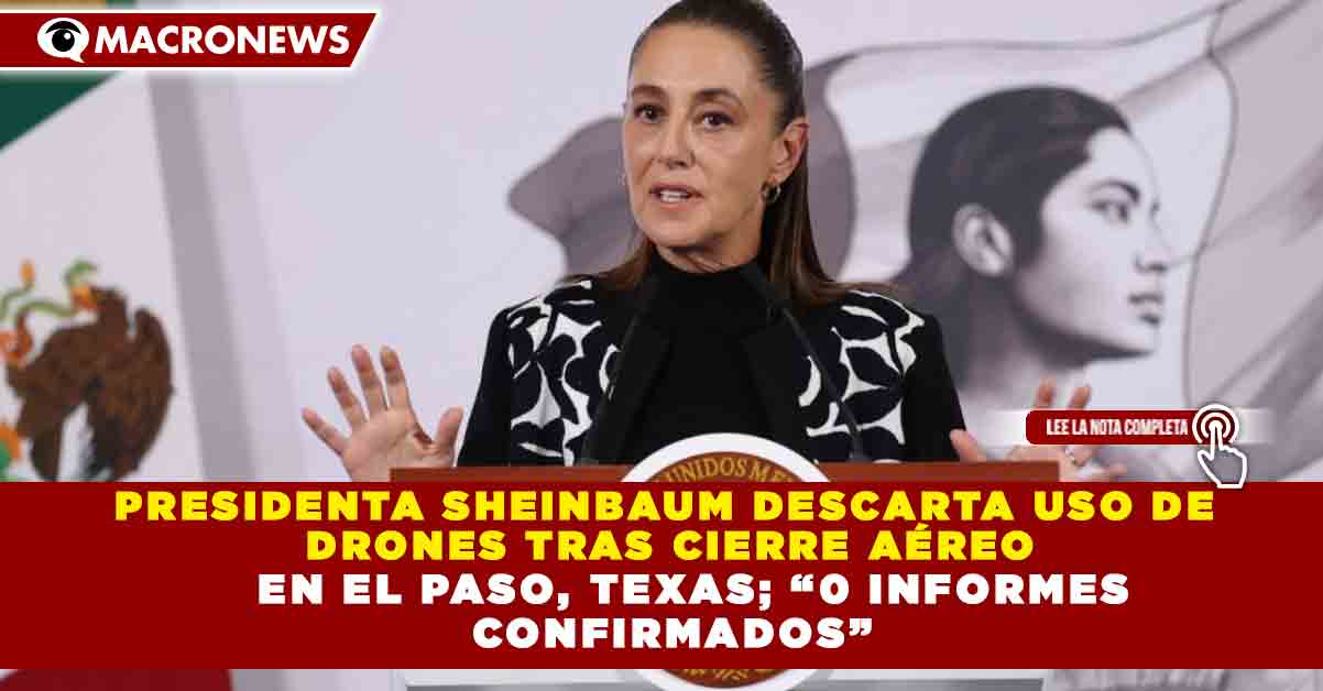 Redacción Macronews.- La presidenta Claudia Sheinbaum afirmó que no existe información confirmada sobre el presunto uso de drones tras el cierre del espacio aéreo en El Paso, Texas, luego de versiones que circularon en torno a posibles incidentes que habrían provocado la suspensión temporal de operaciones.