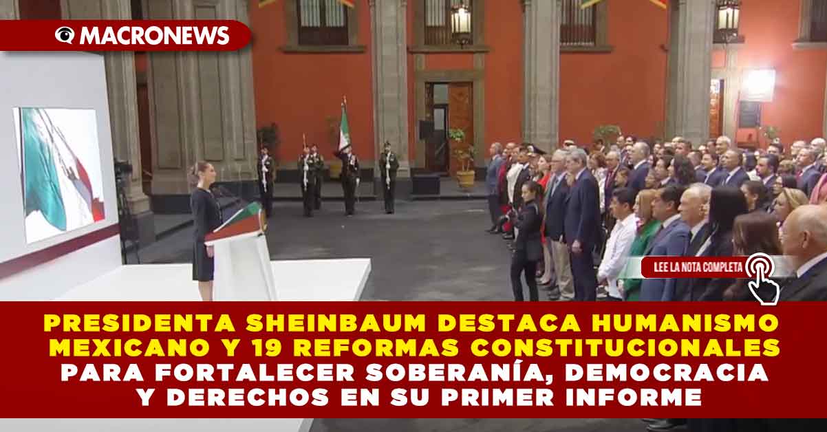 Durante su primer informe de gobierno, la presidenta Claudia Sheinbaum Pardo destacó que el «humanismo mexicano» ha sido el pilar de su administración para fortalecer la soberanía, la democracia y las libertades en el país. La mandataria informó que durante su periodo se impulsaron 19 reformas constitucionales y 40 nuevas leyes, cuyo objetivo central es revertir las políticas implementadas durante el periodo conocido como «neoliberal».