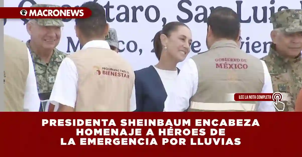 ZUMPANGO, EDOMEX. La presidenta Claudia Sheinbaum Pardo encabezó un homenaje oficial en Zumpango, Estado de México, para reconocer al personal civil y militar que participó en la atención de las lluvias extraordinarias que azotaron a cinco estados del país durante el pasado mes de octubre.