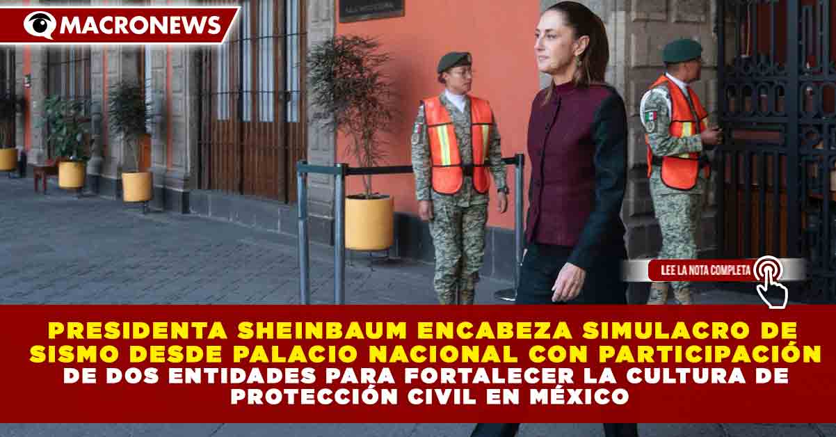 Redacción Macronews.- Autoridades federales participaron desde el Palacio Nacional en el simulacro de sismo realizado de manera simultánea en la Ciudad de México y el Estado de México, como parte de las acciones orientadas a fortalecer la cultura de protección civil y reforzar la preparación ante emergencias.
