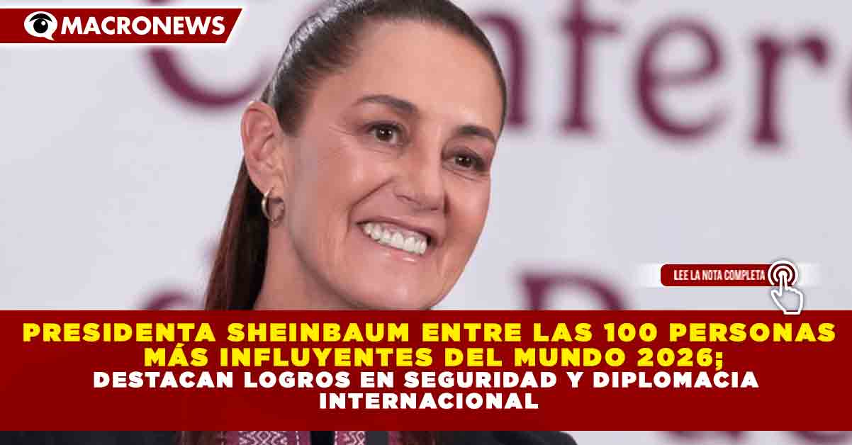 Redacción Macronews.- La presidenta de México, Claudia Sheinbaum Pardo, fue incluida en el listado de las 100 personas más influyentes del mundo en 2026, reconocimiento otorgado por la revista TIME, que destacó su gestión en materia de seguridad y su manejo diplomático frente a tensiones internacionales.