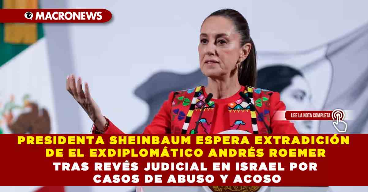 El pasado jueves se dio a conocer que el exdiplomático Andrés Roemer recibió un revés de la justicia de Israel por lo que hoy la presidenta Claudia Sheinbaum Pardo habló sobre la posibilidad de que sea extraditado a México, donde enfrenta acusaciones de abuso y acoso.