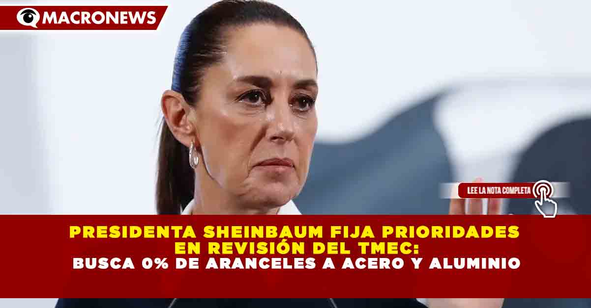 Redacción Macronews.- La presidenta de México, Claudia Sheinbaum, presentó las prioridades del país rumbo a la revisión del Tratado entre México, Estados Unidos y Canadá, destacando la necesidad de mantener aranceles en 0% para el acero y el aluminio, sectores estratégicos para la economía nacional.