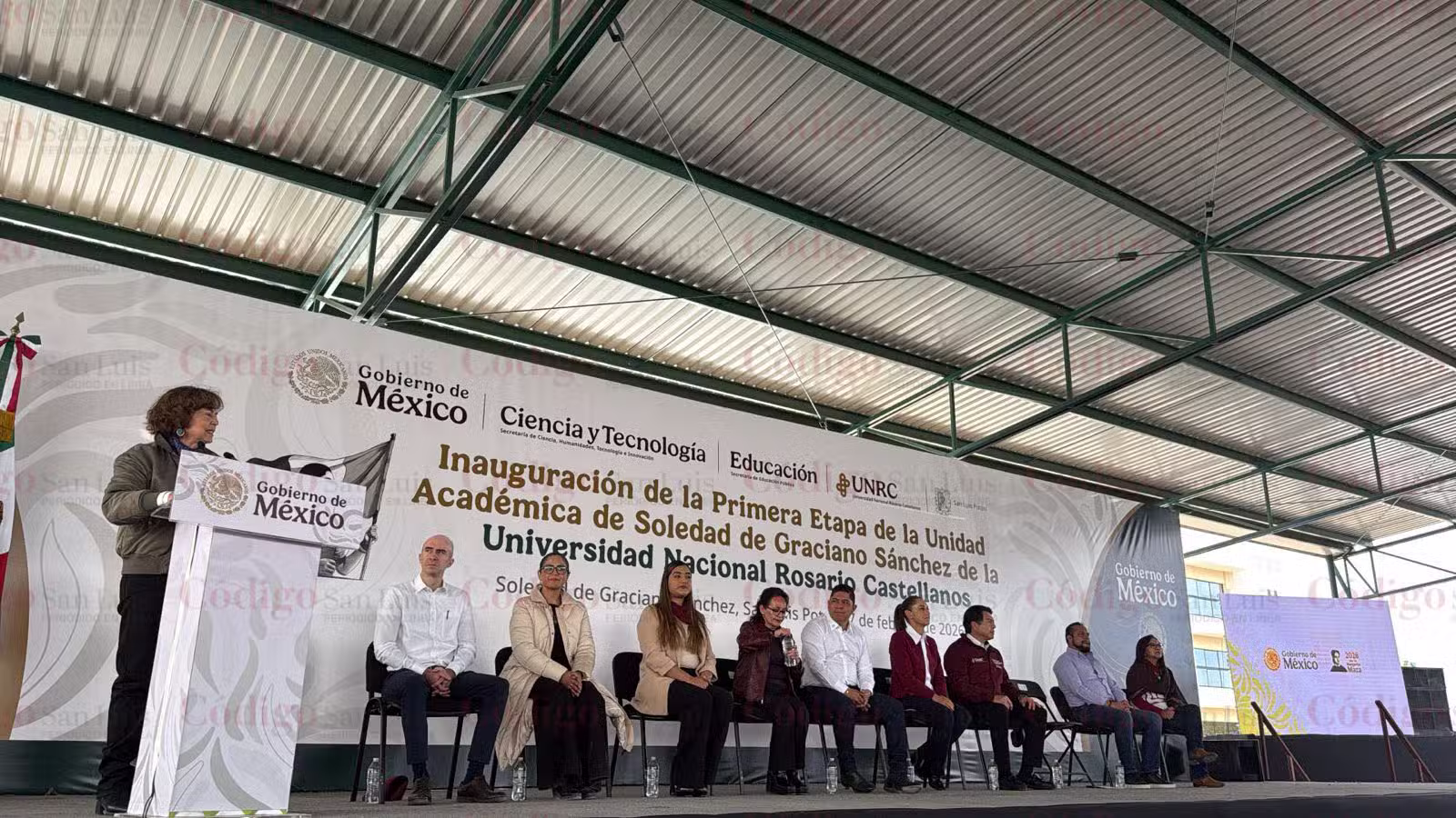 SOLEDAD DE GRACIANO SÁNCHEZ, S.L.P. – La presidenta de México, Claudia Sheinbaum Pardo, y el gobernador de San Luis Potosí, Ricardo Gallardo Cardona, encabezaron este sábado la inauguración de la primera etapa de la Universidad Nacional Rosario Castellanos en este municipio. Acompañados por el secretario de Educación, Mario Delgado, las autoridades entregaron el primer edificio de un complejo que busca revolucionar la oferta educativa y laboral en la región.
