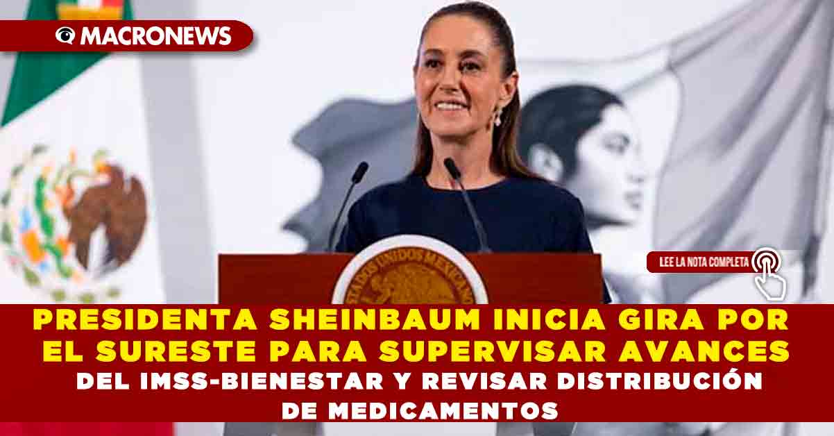 © Derechos Reservados. RTV Radiotelevisión de Veracruz. Contenido obtenido de: https://www.masnoticias.mx/sheinbaum-realizara-gira-al-sureste-del-pais-para-supervisar-avances-de-imss-bienestar/
