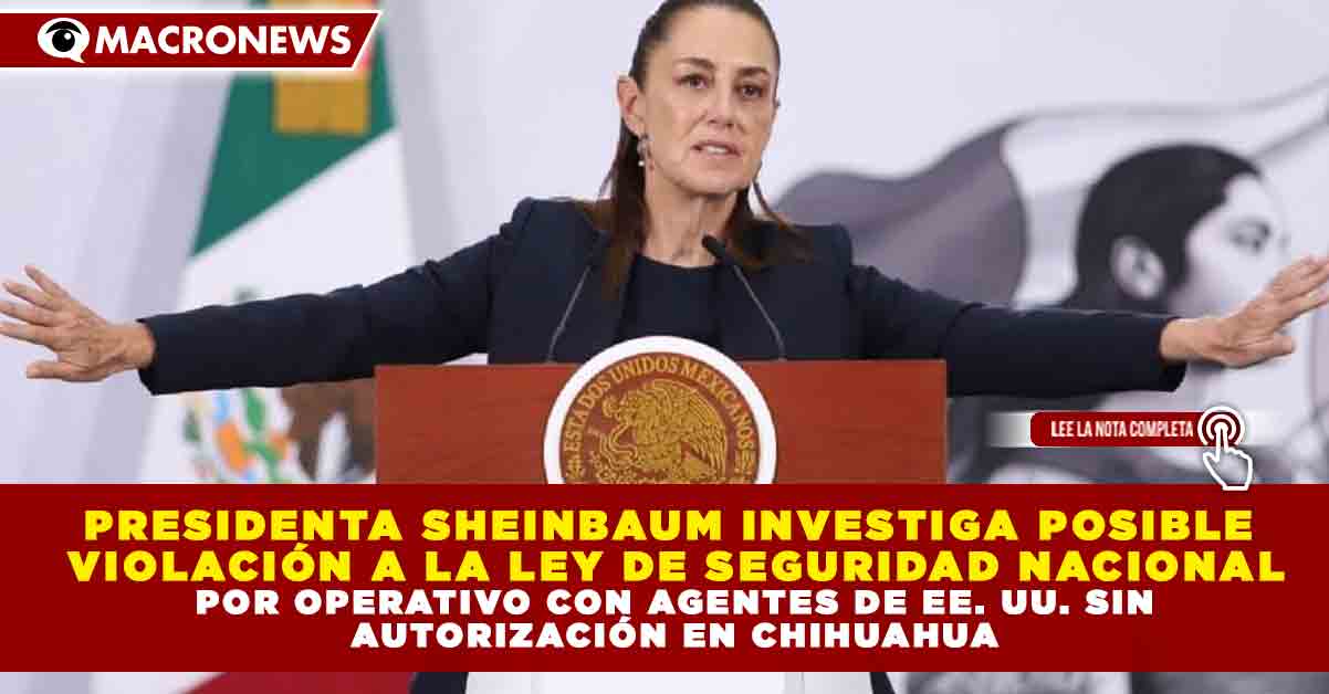 Redacción Macronews.- La presidenta Claudia Sheinbaum informó que el Gobierno de México no tenía conocimiento de la movilización en la que participaron agentes vinculados a la Embajada de Estados Unidos y autoridades de Chihuahua, donde un accidente dejó un saldo de cuatro personas fallecidas, por lo que se inició una revisión para determinar si existió una posible violación a la Ley de Seguridad Nacional.