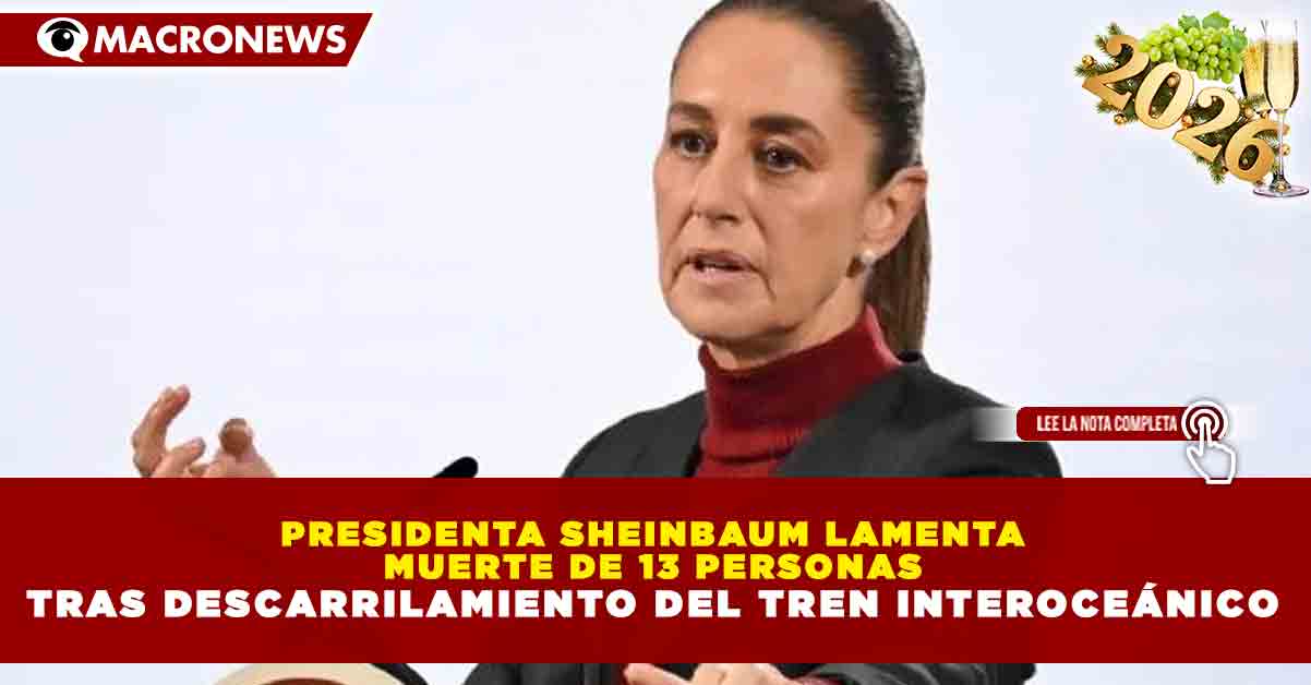 Redacción Macronews.- La presidenta Claudia Sheinbaum lamentó el fallecimiento de 13 personas tras el descarrilamiento del Tren Interoceánico, ocurrido en el sureste del país, y expresó su solidaridad con las familias de las víctimas, además de instruir a las autoridades a brindar atención inmediata a los afectados.
