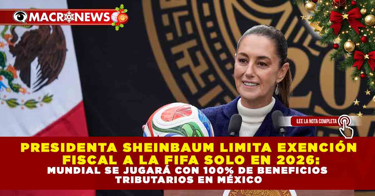 Redacción Macronews.- La presidenta de México, Claudia Sheinbaum, confirmó que el Gobierno federal logró acotar al ejercicio fiscal de 2026 las concesiones fiscales otorgadas a la Federación Internacional de Fútbol Asociación (FIFA) y a las empresas vinculadas al Mundial de Futbol 2026; sin embargo, los partidos y actividades del torneo seguirán exentos del pago de impuestos locales y federales durante ese año, conforme a acuerdos firmados desde 2016.