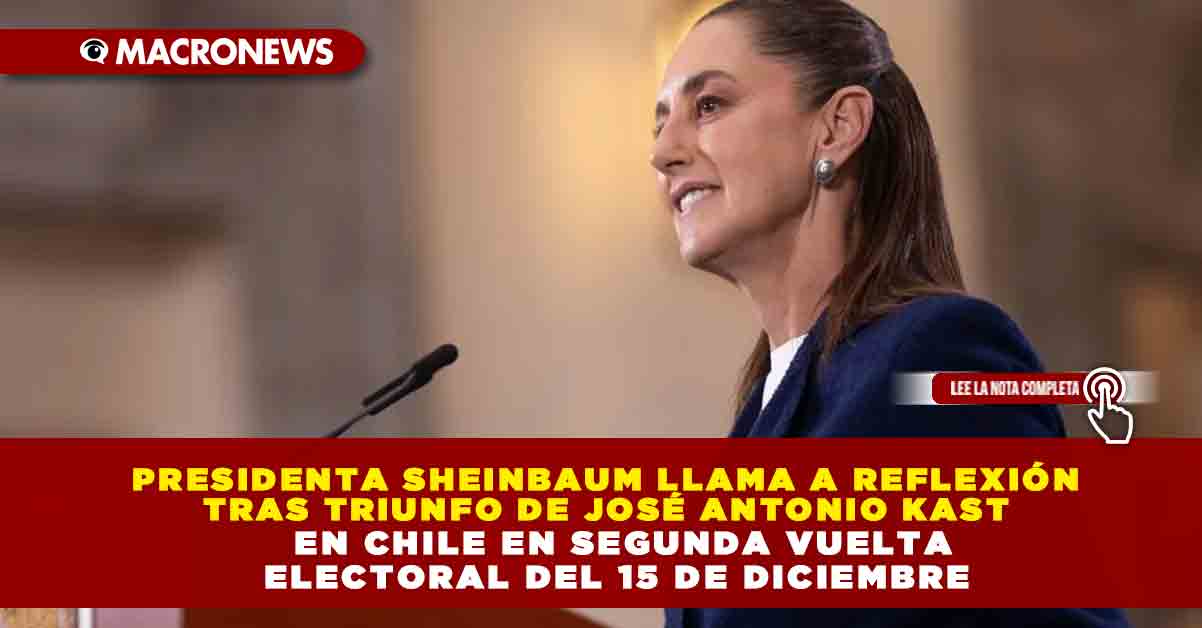 Redacción Macronews.- El triunfo del ultraderechista José Antonio Kast en la segunda vuelta de las elecciones presidenciales de Chile abre un momento de análisis y reflexión para los movimientos progresistas de América Latina, afirmó la presidenta de México, Claudia Sheinbaum Pardo, al subrayar que el resultado fue producto de un proceso democrático decidido por el pueblo chileno.
