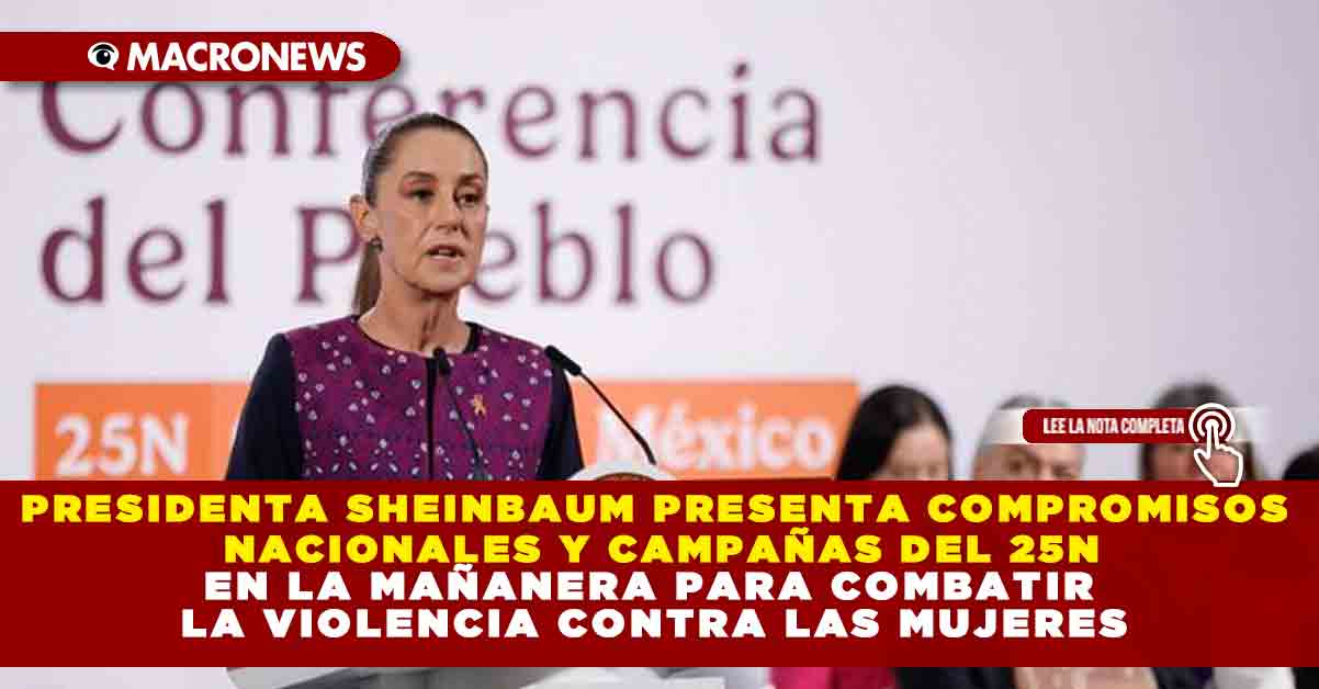 La presidenta Claudia Sheinbaum inició la mañanera acompañada por todas las integrantes de su Gabinete, legisladoras y mujeres invitadas, en el marco del Día Internacional para la Eliminación de la Violencia contra las Mujeres. Gobernadoras y gobernadores se conectaron de manera remota para presentar avances y compromisos estatales.