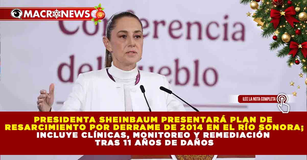 Redacción Macronews.- Autoridades federales confirmaron que este martes 23 de diciembre se darán a conocer los detalles del Plan Integral para el Resarcimiento de los daños ocasionados por el derrame de tóxicos de la minera Grupo México en el Río Sonora, ocurrido en agosto de 2014, el cual afectó a diversas comunidades de la región y dejó pendientes múltiples compromisos de atención ambiental y social.