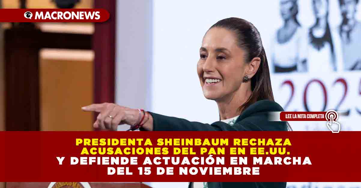 La presidenta Claudia Sheinbaum criticó la denuncia que presentarán dirigentes del Partido Acción Nacional (PAN) en Estados Unidos sobre la marcha del pasado 15 de noviembre convocada por la Generación Z, en la que acusarán que hubo represión contra los asistentes.