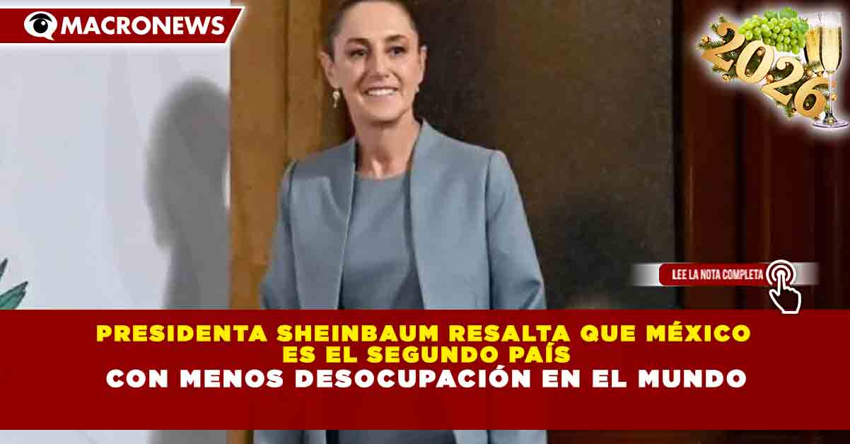 Redacción Macronews.- La presidenta Claudia Sheinbaum destacó que México se ubica como el segundo país con menor tasa de desocupación a nivel mundial, subrayando que este indicador refleja la fortaleza del mercado laboral y los resultados de las políticas económicas y sociales implementadas en los últimos años.