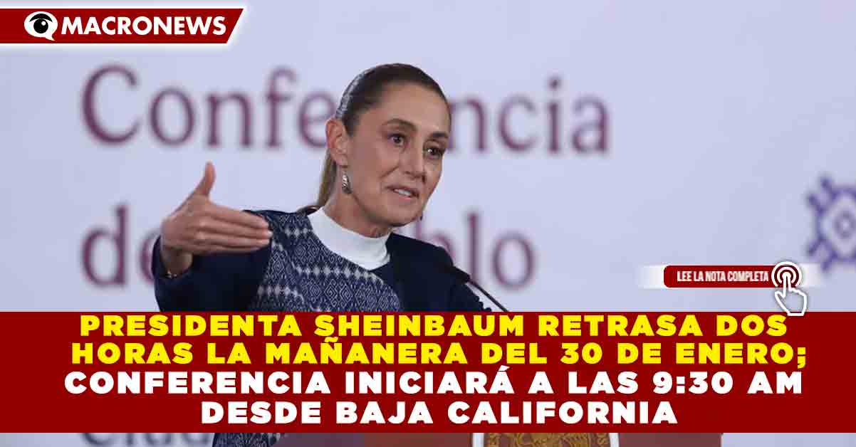 PRESIDENTA SHEINBAUM RETRASA DOS  HORAS LA MAÑANERA DEL 30 DE ENERO; CONFERENCIA INICIARÁ A LAS 9:30 AM  DESDE BAJA CALIFORNIA