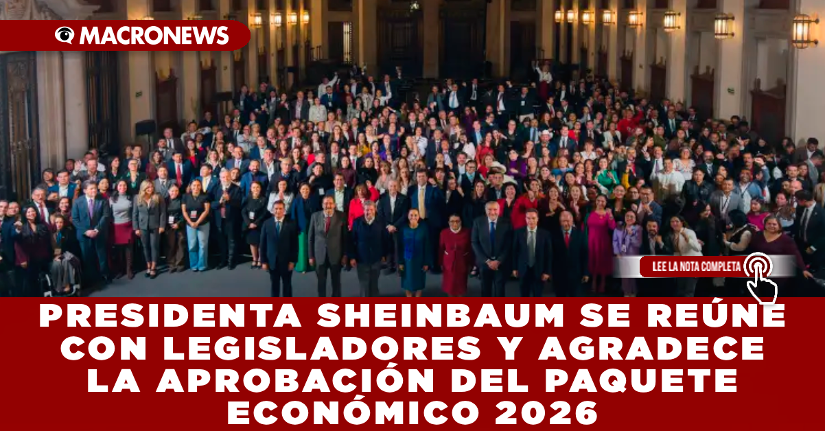 «Agradecí a diputadas, diputados, senadores y senadoras de nuestro movimiento la aprobación del Paquete Económico 2026 y las reformas para el bienestar del pueblo», escribió la presidenta Sheinbaum en su cuenta de la red social X.