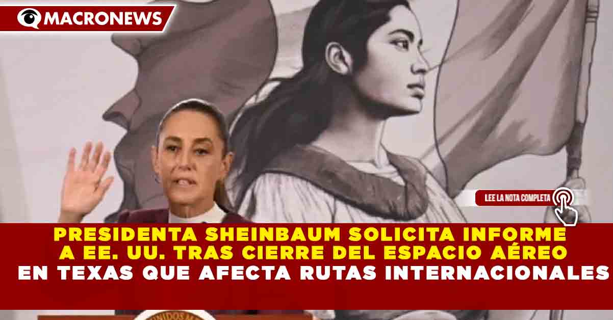 Redacción Macronews.- La presidenta de México, Claudia Sheinbaum, solicitó al gobierno de Estados Unidos información oficial sobre el cierre del espacio aéreo en Texas, medida que ha generado incertidumbre en rutas internacionales y operaciones cercanas a la frontera norte.
