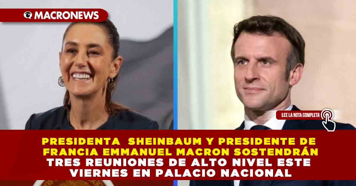 La presidenta de México, Claudia Sheinbaum Pardo, informó que este viernes sostendrá tres reuniones de alto nivel con el mandatario francés Emmanuel Macron en Palacio Nacional, como parte de su visita oficial a México, a donde arribó esta madrugada junto con miembros de su gabinete.