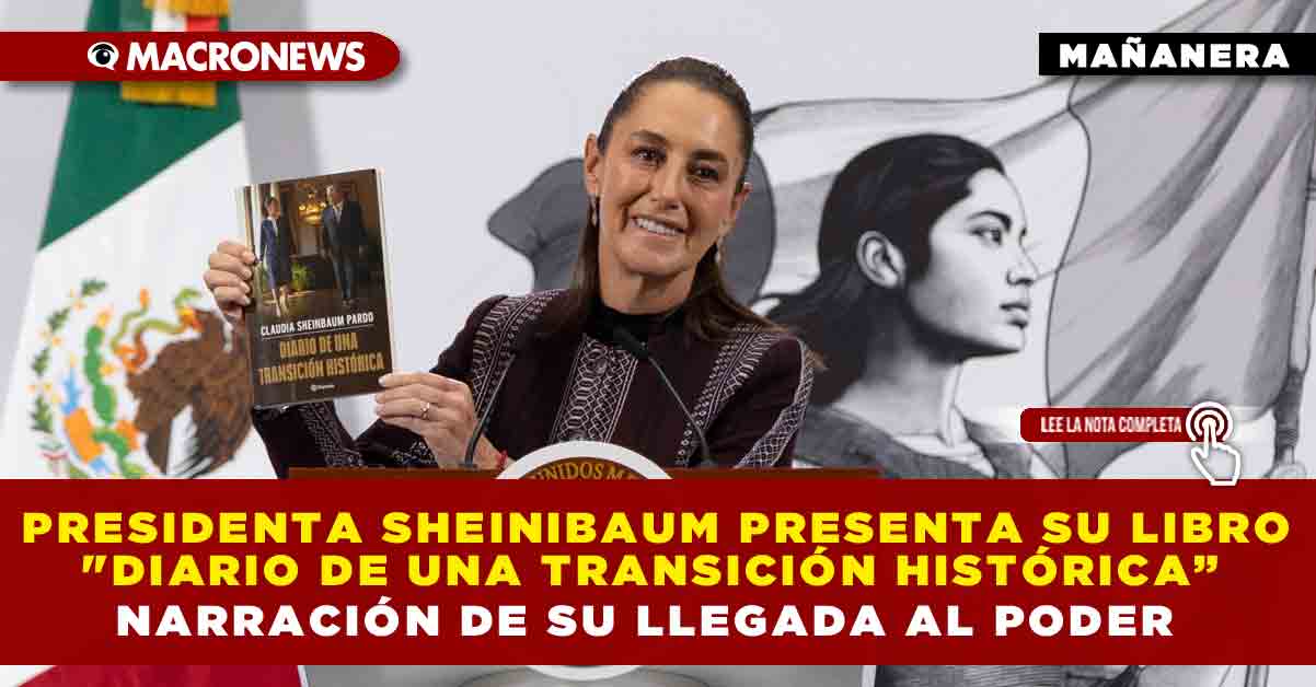 Redacción Macronews.- La presidenta de México, Claudia Sheinbaum Pardo, presentó oficialmente su nuevo libro titulado “Diario de una Transición Histórica”, una obra que relata desde su experiencia personal y política el proceso de cambio que vivió el país tras su llegada a la Presidencia. El texto, publicado por Editorial Planeta, cuenta con 248 páginas y ya está disponible en librerías y plataformas digitales por un precio aproximado de 298 pesos.