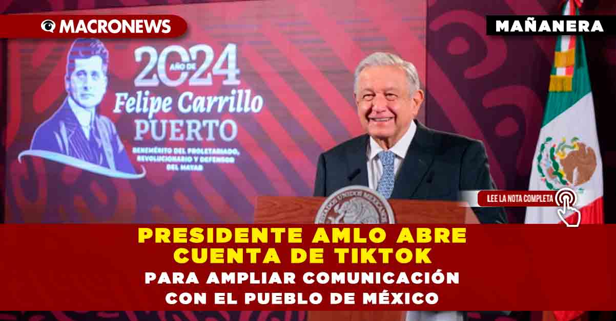 El presidente Andrés Manuel López Obrador anunció este martes su cuenta de TikTok: https://bit.ly/TikTokPresidenteAMLO a fin de expandir su comunicación oficial a esa plataforma y compartir con el pueblo de México toda la información, actividades, logros y resultados del Gobierno de la Cuarta Transformación.