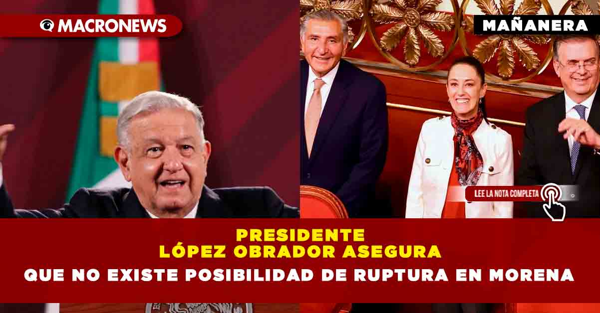 Presidente López Obrador asegura que no existe posibilidad de ruptura en Morena