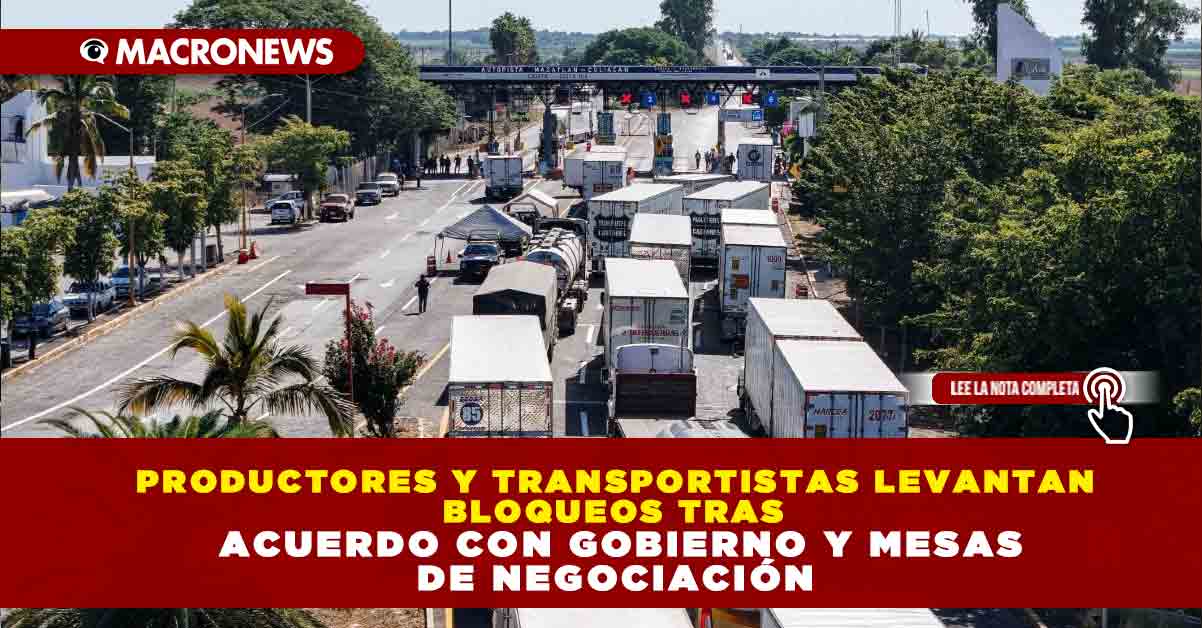 La Secretaría de Gobernación informó que dirigentes de productores agrícolas y transportistas aceptaron retirar los bloqueos que mantuvieron desde el lunes, después de la mesa de negociación realizada este jueves.