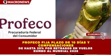 Redacción Macronews.- A poco más de dos meses del arranque de la Copa Mundial de la FIFA 2026, la Procuraduría Federal del Consumidor (Profeco) informó que las aerolíneas tendrán un plazo máximo de 10 días naturales para indemnizar a pasajeros afectados por retrasos o cancelaciones atribuibles a su operación.