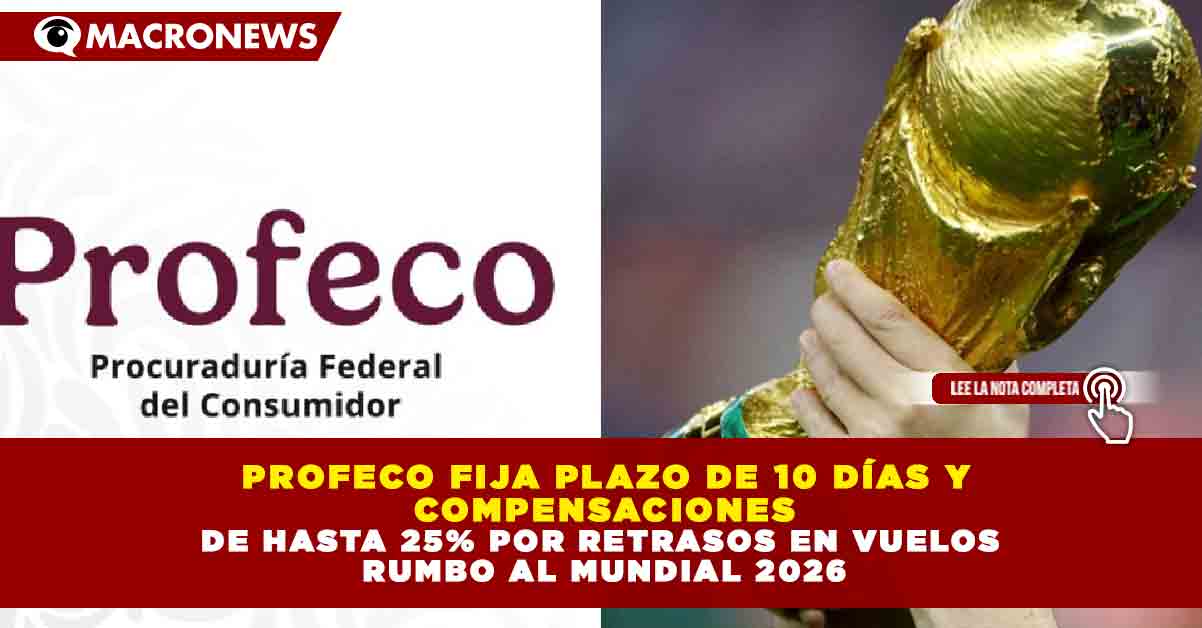 Redacción Macronews.- A poco más de dos meses del arranque de la Copa Mundial de la FIFA 2026, la Procuraduría Federal del Consumidor (Profeco) informó que las aerolíneas tendrán un plazo máximo de 10 días naturales para indemnizar a pasajeros afectados por retrasos o cancelaciones atribuibles a su operación.