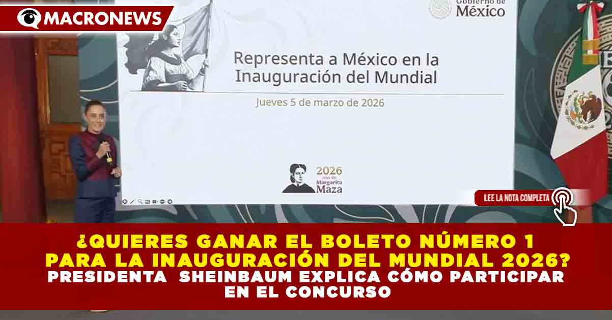 Redacción Macronews.- El Gobierno de México anunció un concurso nacional para elegir a la joven que representará al país durante la ceremonia inaugural del Mundial de la FIFA 2026, donde se entregará el boleto número 00001 del partido inaugural a una futbolista mexicana seleccionada mediante la convocatoria “Representa a México en la Inauguración del Mundial”.