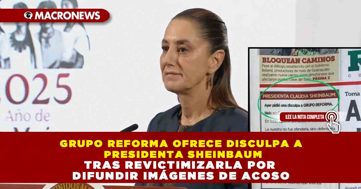 El jueves 6 de noviembre de 2025 el periódico Reforma ofreció una disculpa a Claudia Sheinbaum, luego de que esta condenó la publicación revictimizante.