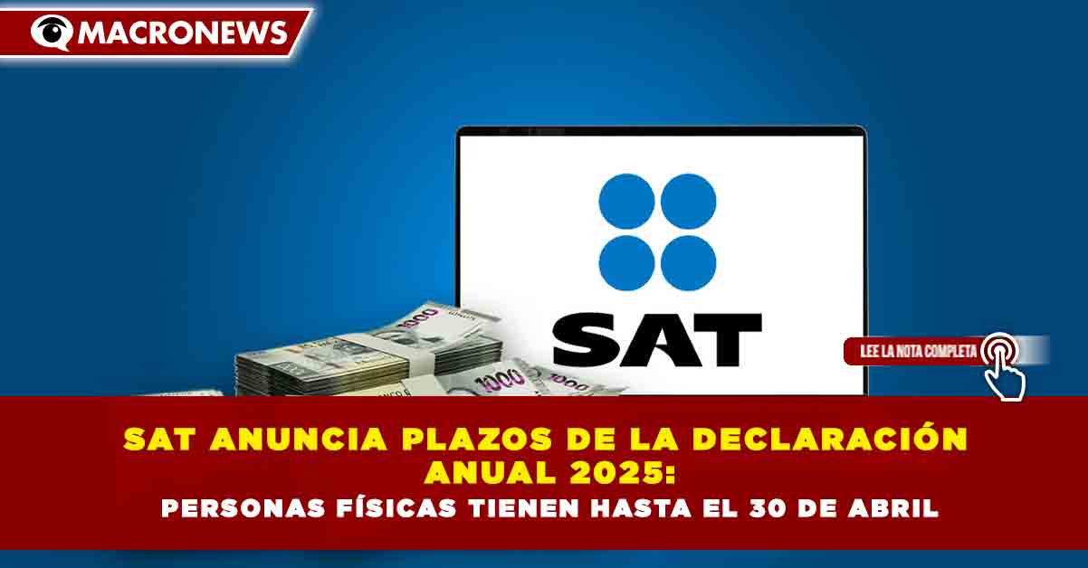 SAT ANUNCIA PLAZOS DE LA DECLARACIÓN ANUAL 2025: PERSONAS FÍSICAS TIENEN HASTA EL 30 DE ABRIL