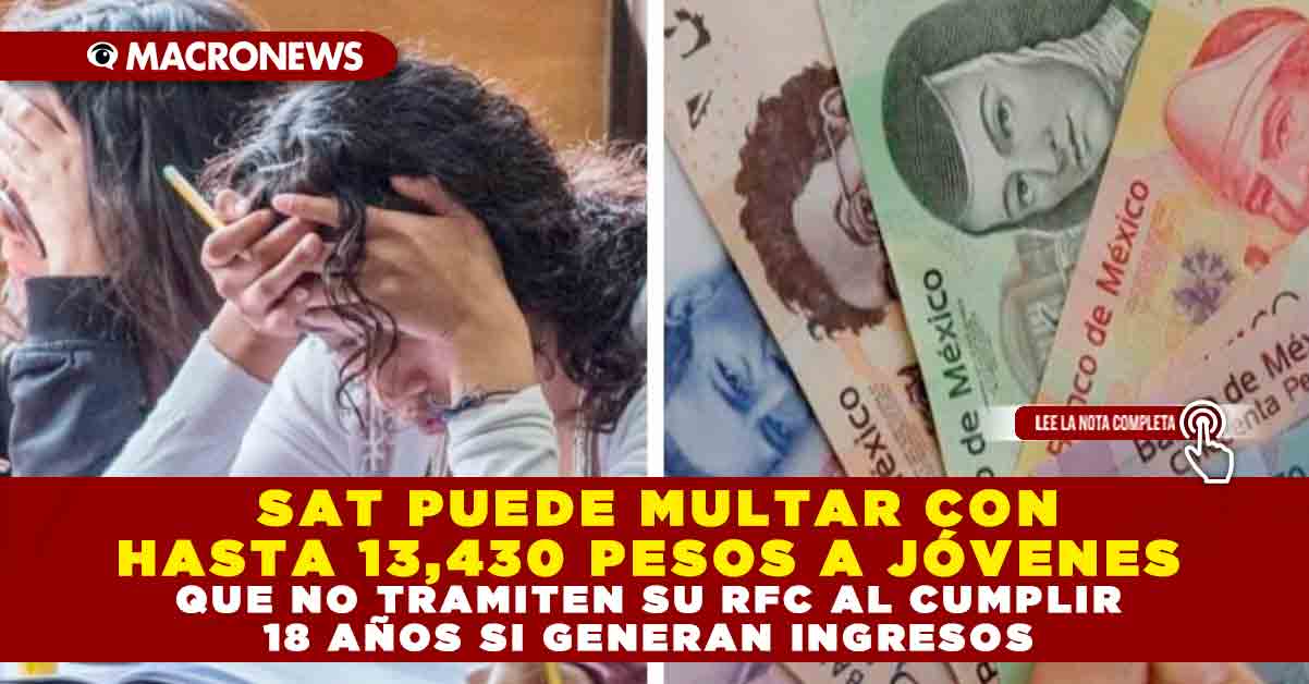 SAT PUEDE MULTAR CON HASTA 13,430 PESOS A JÓVENES QUE NO TRAMITEN SU RFC AL CUMPLIR 18 AÑOS SI GENERAN INGRESOS