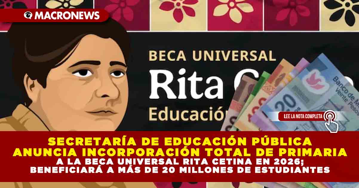 Redacción Macronews.- La Secretaría de Educación Pública (SEP) confirmó la incorporación total de estudiantes de primaria pública a la Beca Universal Rita Cetina a partir del ciclo escolar 2026, lo que permitirá alcanzar una cobertura histórica de más de 20 millones de alumnos en educación básica. Esta medida representa un avance decisivo en la política social educativa del país, al priorizar el apoyo económico directo para evitar el abandono escolar.