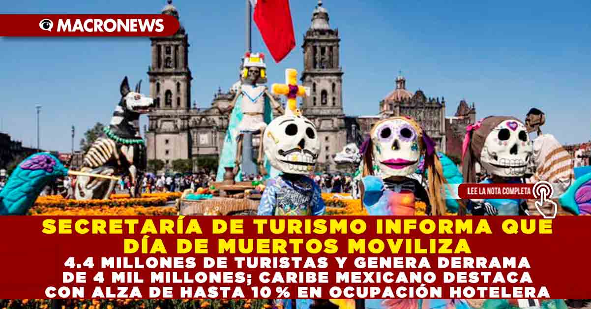 Redacción Macronews.- La celebración del Día de Muertos, considerada la más emblemática de México, ha trascendido fronteras y se consolida como un motor económico clave para el sector turístico. De acuerdo con datos de la Secretaría de Turismo (Sedetur), durante esta temporada se movilizan más de 4.4 millones de turistas, de los cuales el 90 % son nacionales, generando una derrama económica superior a los 4 mil millones de pesos. En el Caribe Mexicano, se espera un incremento de entre 5 y 10 % en la ocupación hotelera, gracias a la oferta de experiencias culturales, gastronómicas y artísticas alusivas a la fecha.