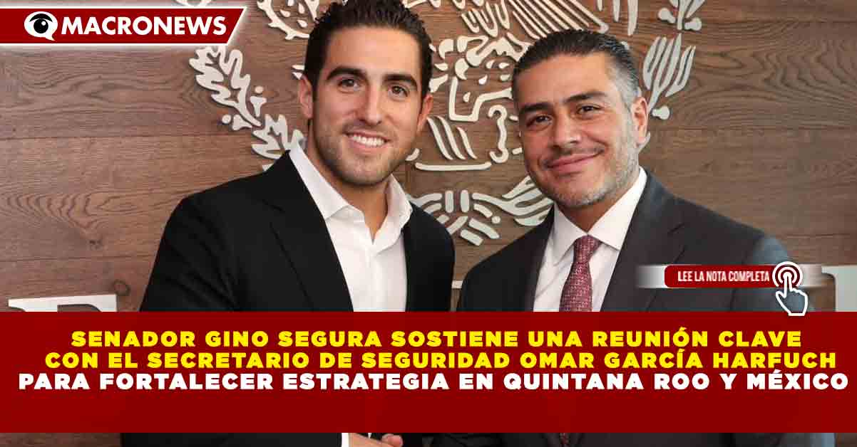 Redacción Macronews.- El senador Gino Segura sostuvo una reunión de trabajo con el secretario de Seguridad y Protección Ciudadana del Gobierno de México, Omar García Harfuch, con el objetivo de dialogar sobre los avances, retos y áreas de oportunidad en materia de seguridad tanto en Quintana Roo como a nivel nacional.
