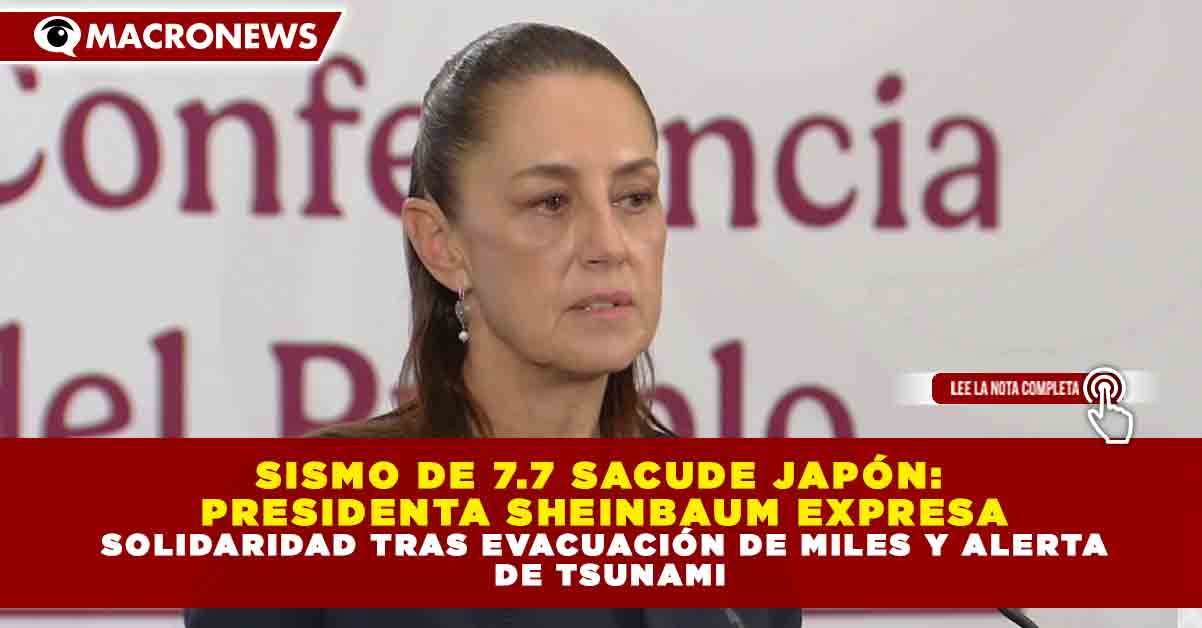 Redacción Macronews.- La presidenta de México, Claudia Sheinbaum Pardo, expresó su solidaridad con el pueblo de Japón tras el sismo de magnitud 7.7 que impactó la costa noreste del país asiático, provocando la activación de una alerta de tsunami y la evacuación preventiva de miles de personas.