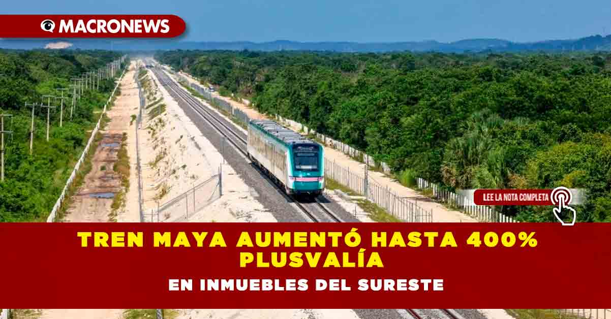 “Con la construcción del Tren Maya, la plusvalía en el sureste mexicano se fue al cielo: de situarse en 15.37 por ciento cuando se anunció el proyecto, el costo del metro cuadrado en la zona incrementó casi un 400 por ciento”, dijo la empresa.