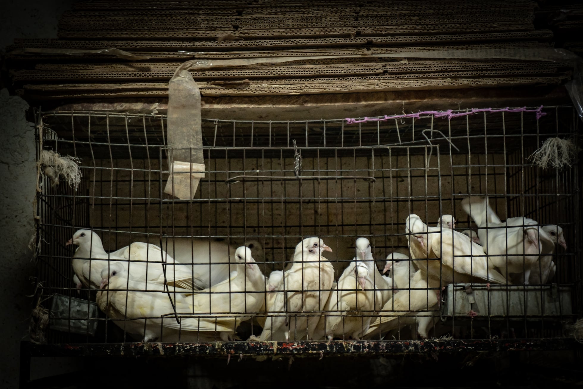 En la jaula hay en torno a 20 codornices. En las demás hay palomas blancas y grises, pollos, patos y gallos blancos y negros. Estos últimos, por su color, se usan para santería, otro de los motivos por lo que los animalistas exigen que se deje de vender en el mercado. “Yo vendo lo que pidan. Una señora compró gallinas para que pongan huevos. Cada quien decide qué hacer. Mientras están aquí, los cuido. Tienen agua, comida y están limpios”, justifica la comerciante.